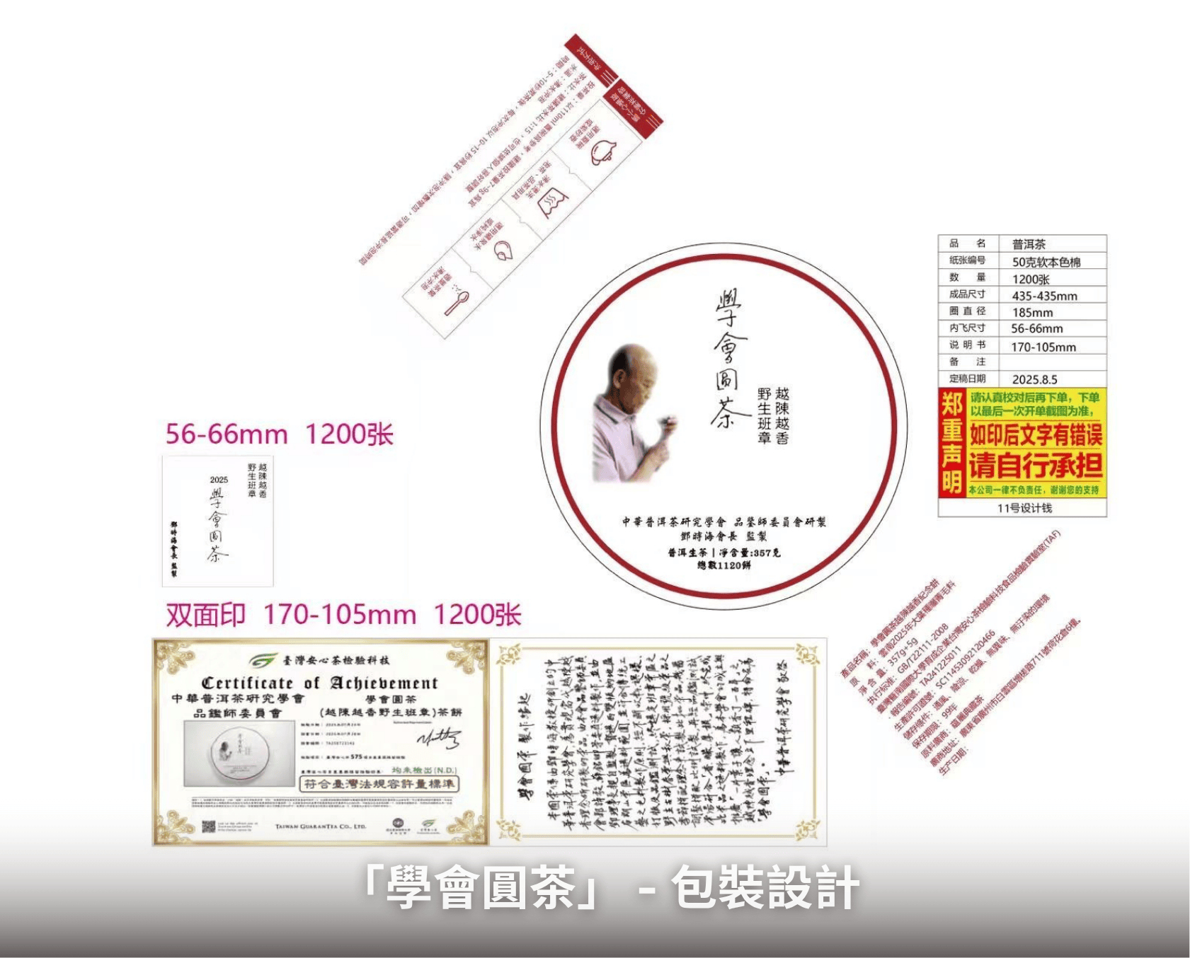 「學會圓茶」為本學會的成立與推廣「一片葉子讓人類香了一百年」之越陳越香理念立下里程碑,故特命名「學會圓茶」,也是學會的第一餅茶。鄧老師希望未來每年學會以此產區原料持續產製第二批、第三批….等茶品,期待日後能建立起布朗山班章茶區越陳越香的轉化體系茶品。