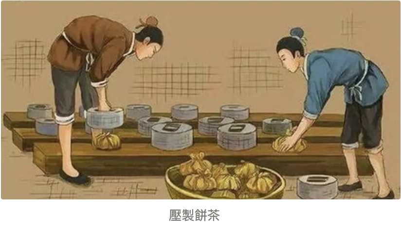 壓制餅茶 - 方便存放與運輸然而,乾茶易碎、體積較大、並且難以運輸,為了解決這個難點,人們開始嘗試將茶葉壓製成餅茶。三國《廣雅》記載:「巴間採茶作餅,葉老者餅成以米膏出之」,即巴國[1]將採摘的茶葉與米膏[2]混合後壓製成茶餅,既增加了粘合性,又方便存放和運輸。