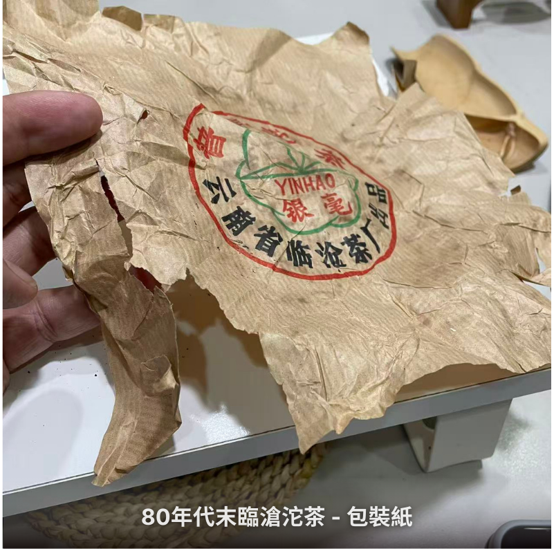 託最近直播和短影音的福,傳丰堂多了不少新朋友,這款茶的詢問度也變得很高,為了回應大家的好奇,這幾天我特地從茶倉裡請出一沱。打開包裝紙時,動作必須非常小心,畢竟已經三十幾年的陳期,包裝紙開始風化,稍一不慎就會撕破。