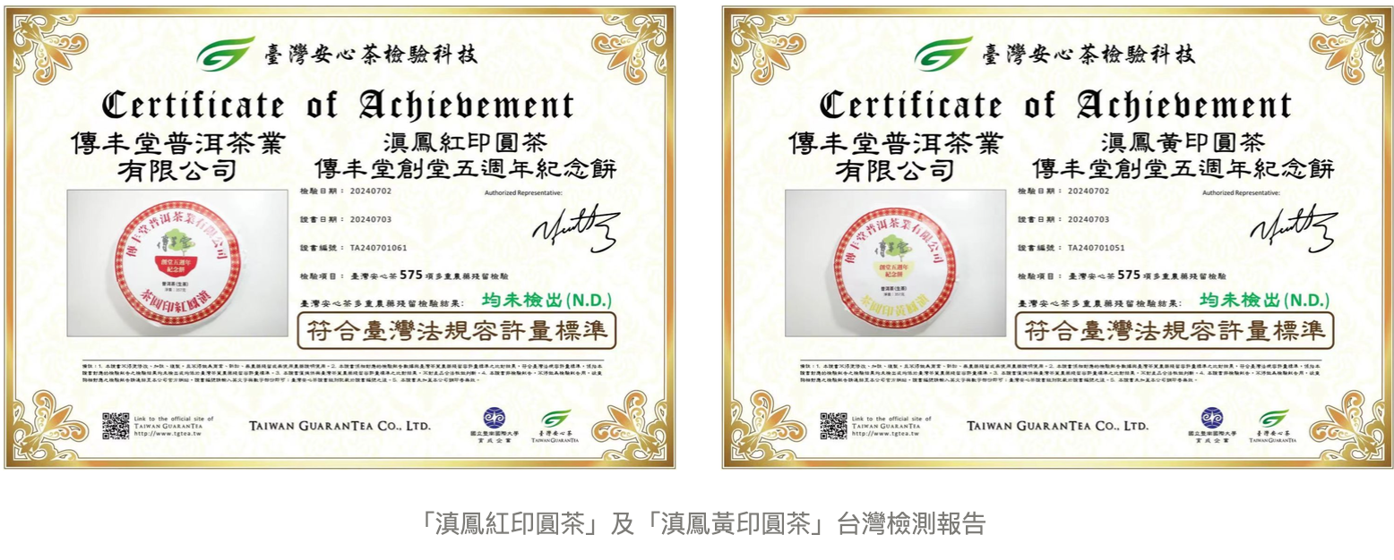 目前兩款紀念餅均已完成臨滄質檢中心及台灣安心茶檢驗科技的農殘檢驗項目,且都達到均未檢出的高標準要求,接下來準備開始進行茶品產製了,敬請期待!