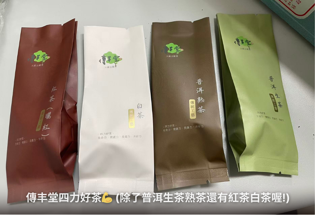 技師常說,「好東西跟好朋友分享」,傳丰堂產製的茶品在剛上市時,用幾近成本的推廣價分享給茶友,希望更多茶友能夠沒有壓力的喝到沒有農藥的,健康的大樹古樹茶。我們每年調價,待十年後回歸到其應有的價值,各位茶友不妨試試!另外,技師也會在FB直播分享好的普洱老茶,有興趣的茶友,可以關注喔!