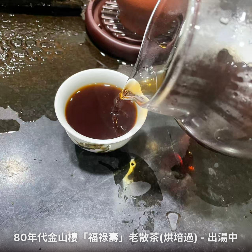 這款「福祿壽」承襲金山樓獨門的拼配技藝,經過四十多年的藏養,難免帶了些老倉庫的陳韻與雜味。品飲前,透過烘焙小籠微火慢焙,不僅能驅除雜味,也是很好的醒茶方式。