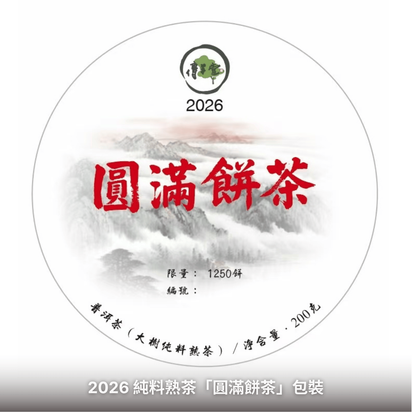 傳丰堂2025優質大樹純料熟茶「圓滿餅茶」,採用保山老熊窩茶區大樹純料春茶,經小堆離地發酵產製而成,預計產量300公斤。老熊窩生態原始且非常優質,海拔高達2100公尺,進入茶區需徒步行走陡峭山路,茶質屬於苦底且霸氣,但化的很快,香氣優雅。感謝合作夥伴團隊提供如此優質的原料,感恩其對技師茶品嚴苛要求的支持與配合,讓技師有機會製作這款以「圓滿」為理念的好茶。
