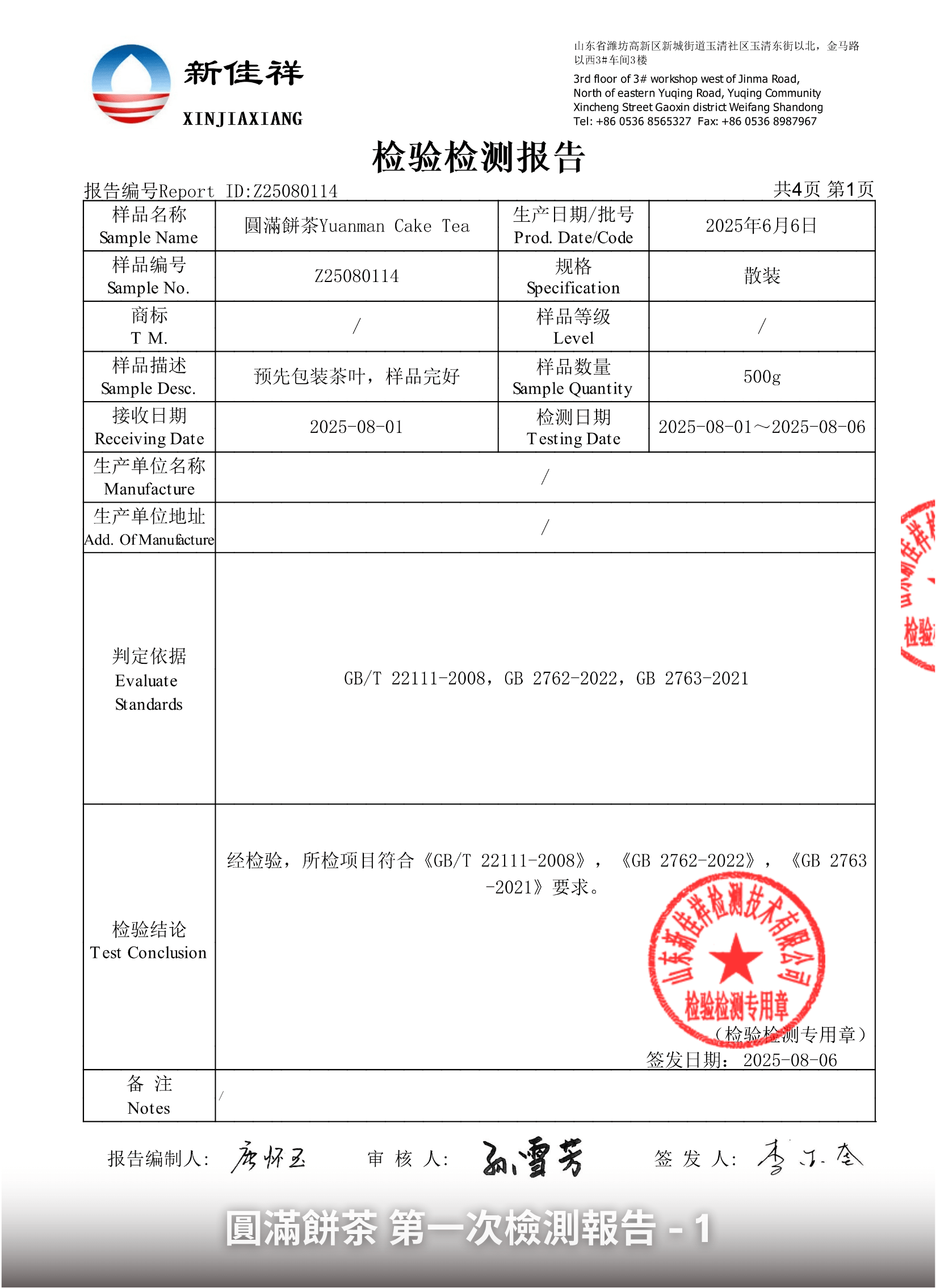 2025圓滿餅茶農殘檢測報告已經出爐,所有檢測項目均通過!許多農殘項目標準要求≤5%甚至≤20%就算合格,但圓滿餅茶全部均為「未檢出」,十分優秀的茶品。許多茶商沒有做農殘檢測,因為做出來的結果可能根本通過不了,浪費時間浪費錢,但我們對自己的產品有信心,並且要拿數據給大家看——我們是真的好,不是只是自己說說而已。我們也記下了許多製茶過程,盡可能的保持公開透明,為的就是讓客戶不只是「聽到」,還能夠「看到」實際的品質。除了我們自己知道產品的好以外,我們也不想讓客戶有一絲的不安心!