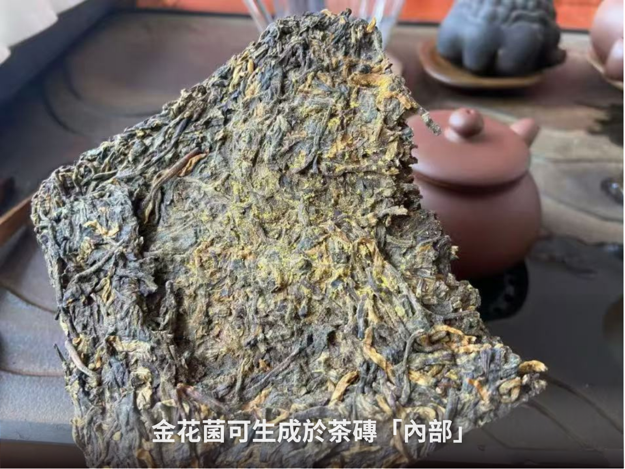 📝「金花菌」與「黴菌」辨別關鍵✅ 香氣:金花菌的茶品會有淡淡的檳榔香、菌香,亦言,香氣純正,聞之愉悅舒服;反之,霉菌的味道則不討喜。✅ 外觀:金花菌是金黃色的「飽滿顆粒狀」,而霉菌是「絲狀」、「絨毛狀」的白霉絲。✅ 附著性: 金花菌牢牢附著在茶葉上,而霉菌容易被風吹或擦掉。✅ 內部生長:金花菌可生成於茶磚「內部」,而霉菌多分布在茶葉「表面」。