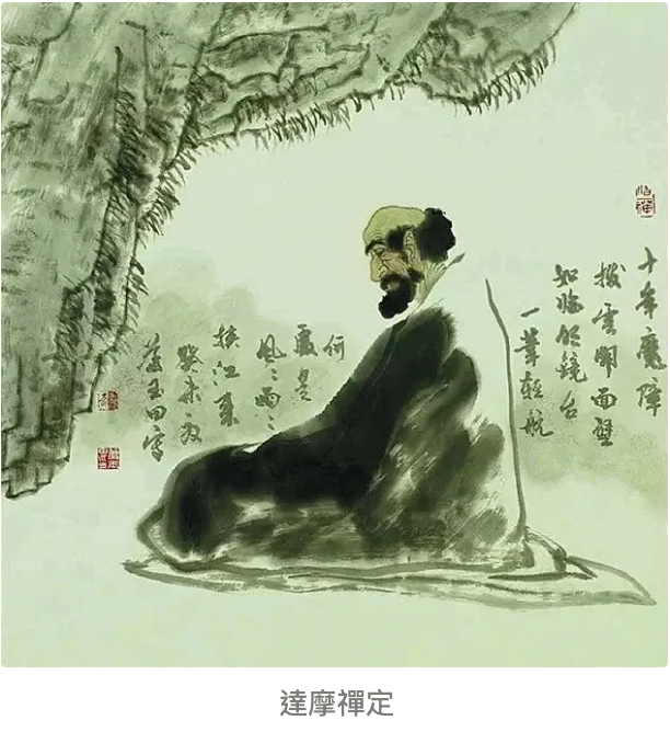 另外一個故事和達摩有關。達摩是印度南部的一位高僧,據說在六朝时期,達摩為了參悟禪理,從印度出使到中國,立下九年在嶗山靜坐、面壁禪定的誓言。前三年,達摩做到了,但最終因體力不支而睡著了。他對自己很失望,於是憤怒的割下自己的眼瞼,沒想到眼瞼掉下去的土裡竟然長出了一棵小樹,枝葉繁茂。將這棵小樹的葉子採下來,在熱水中浸泡,可以飲用,也能夠消睡。最終,達摩成功完成了九年的禪定。
