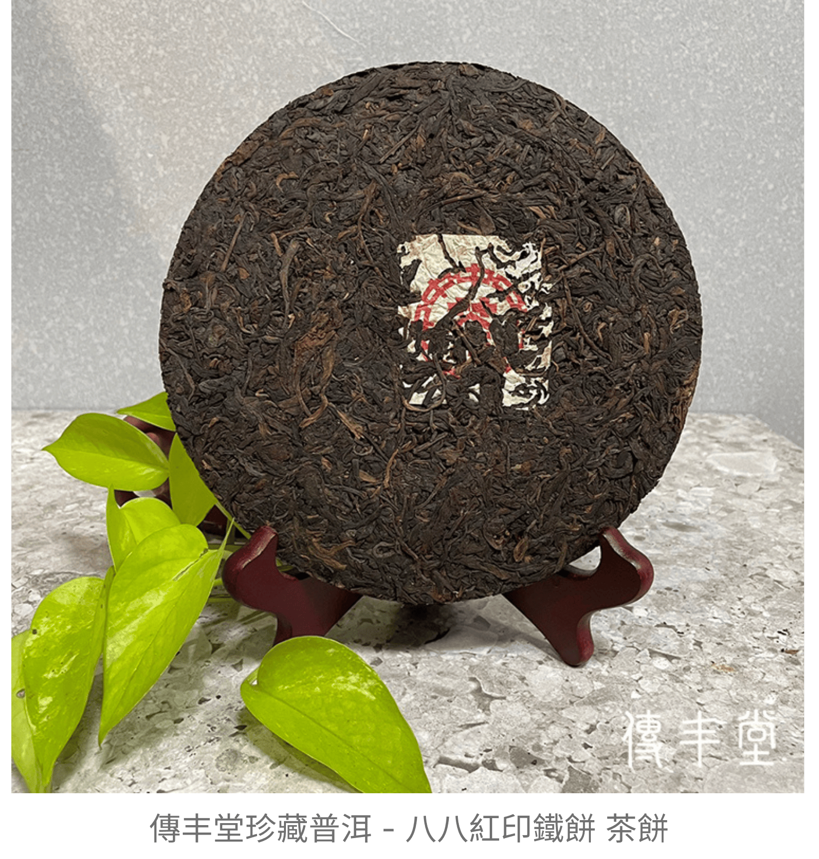 八八紅印鐵餅,又稱「八八紅鐵」,是由台灣大友普洱茶 廖院長運作成功的中期普洱茶品。因為該茶品早期從香港引進來台灣時,有一定的數量,且其品質優質,加上廖院長有計畫的佈局、推廣、運作下,從一餅幾百元台幣的價格,到目前市場行情20幾萬,而且資源還被藏家們穩穩地藏養在好宅裡發酵、陳化。同期間的「八八青餅」,目前市場行情一片約台幣40萬~75萬,因此「八八紅鐵」後續的價值值得期待!