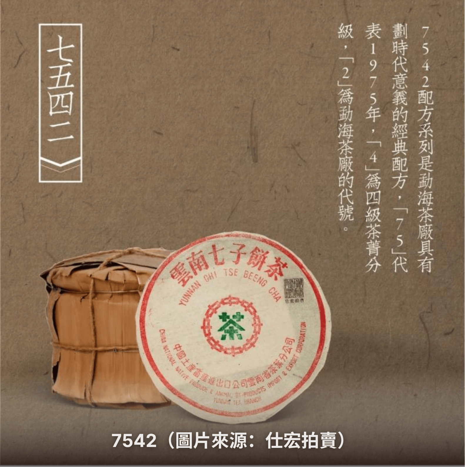 什麼是「七子餅」與「數字茶」?七子餅茶源自清代的餅茶,但直到多年後才標準化成為每餅357克、七餅一筒的包裝。這種規格成為普洱茶出口、市場流通的經典單位。數字茶,專指雲南國營大廠自1970年代起,根據標準化四位數所推出的七子餅產品。以7542、7572為代表,這些配方餅因命名規則而得名「數字茶」,成為當代普洱拼配與陳化體系的核心。