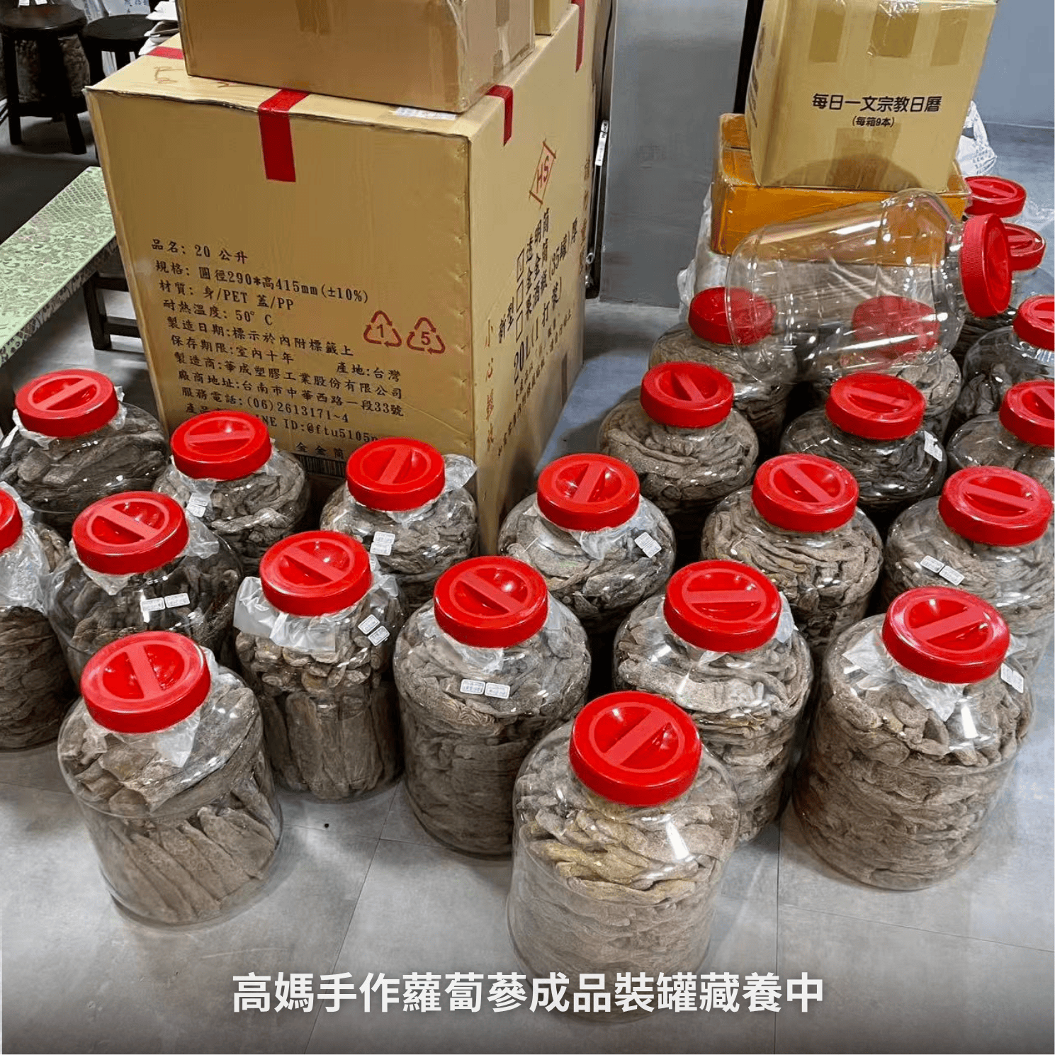 ❤️ 為了維持品質穩定及降低產品失敗風險,「高媽手作」堅持用「少量、多批次」來產製本堂的優質蘿蔔蔘,更是高媽用心力、用勞力、用汗水、用毅力辛苦換來的成果;接下來會將其藏養在「傳丰堂蘿蔔蔘銀行」倉庫裡,靜待10年發酵陳化後,它們即將進入「烏金蔘」門檻。