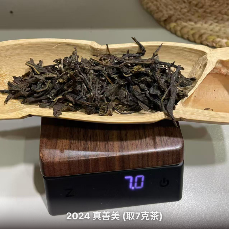 坐在茶桌前,想著晚上直播分享什麼茶好,腦海中忽然浮現出一款茶,「2024 真善美」,於是從櫃子裡取出一片茶樣先來品飲。這款茶產自雲南保山市瀑布溫泉地茶區,生態環境非常好。