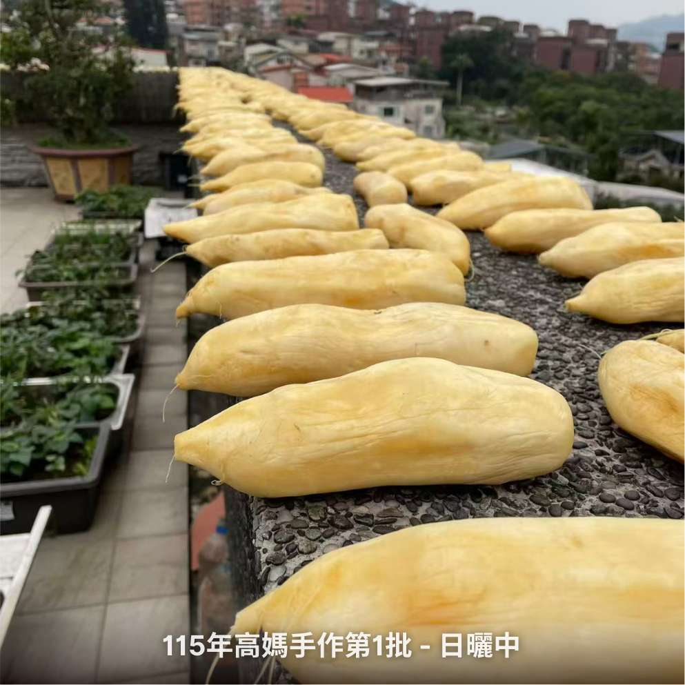 氣溫10度,用冷水洗手,感覺手都要結凍了,今年第一次讓我感受到寒流的威力。今年第一批高媽手作蘿蔔蔘第三次重壓脫水後,今天開始進行日曬脫水工序,這種天氣,是躲在被窩裡睡覺最幸福的享受,但阿母於八點過後,看天氣穩定,應該不會下雨,就開始接下來忙碌的產蔘生活。阿母常說,她只要有事情做,她都很快樂,我也是耶!看來我真的遺傳到阿母阿爸的快樂做、幸福做基因。我喜歡把興趣當事業、當志業,樂在工作、工作快樂,歡喜受,就會歡喜壽,此生就能圓滿如意,共勉之!