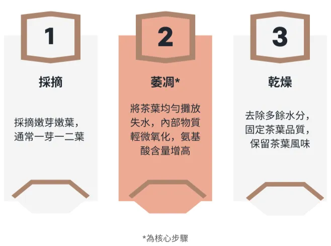 白茶白茶是最自然、加工最少的茶類,其製作工藝相對簡單,主要是為了保留茶葉的清新和自然特質。白茶通常選擇一芽一二葉,這些葉子經過輕度處理,保留了更多天然物質。白茶製作的核心步驟是萎凋,通過長時間的自然失水來促進茶葉內部成分的轉化,形成白茶特有的鮮爽與醇厚感。以下是白茶的主要製作步驟:白茶保留了豐富的天然物質,尤其是茶多酚和氨基酸,這些成分具有抗氧化和抗炎作用,有助於增強免疫力和促進新陳代謝。白茶性清涼,具有清熱解毒的功效,對於保護皮膚、降火和舒緩壓力都有良好的效果。由於其加工過程較少,白茶的口感清淡,適合喜愛輕柔茶香和自然風味的茶友。