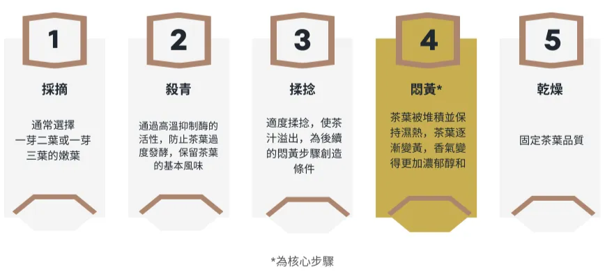 黃茶黃茶屬於輕發酵茶,製作工藝的特色在於其獨特的“悶黃”工藝。黃茶的製作過程包括殺青、揉捻和悶黃,這些步驟賦予了黃茶黃湯黃葉的特點,使其香氣醇和。以下是黃茶的主要製作步驟:黃茶的悶黃工藝使其具有醇和的口感和獨特的色澤,這種製作方式減少了茶葉的苦澀感,使其更加適合那些喜歡溫和口感的茶友。黃茶具有助消化、增強免疫力和保護腸胃的功效,常見品種包括君山銀針和霍山黃芽。