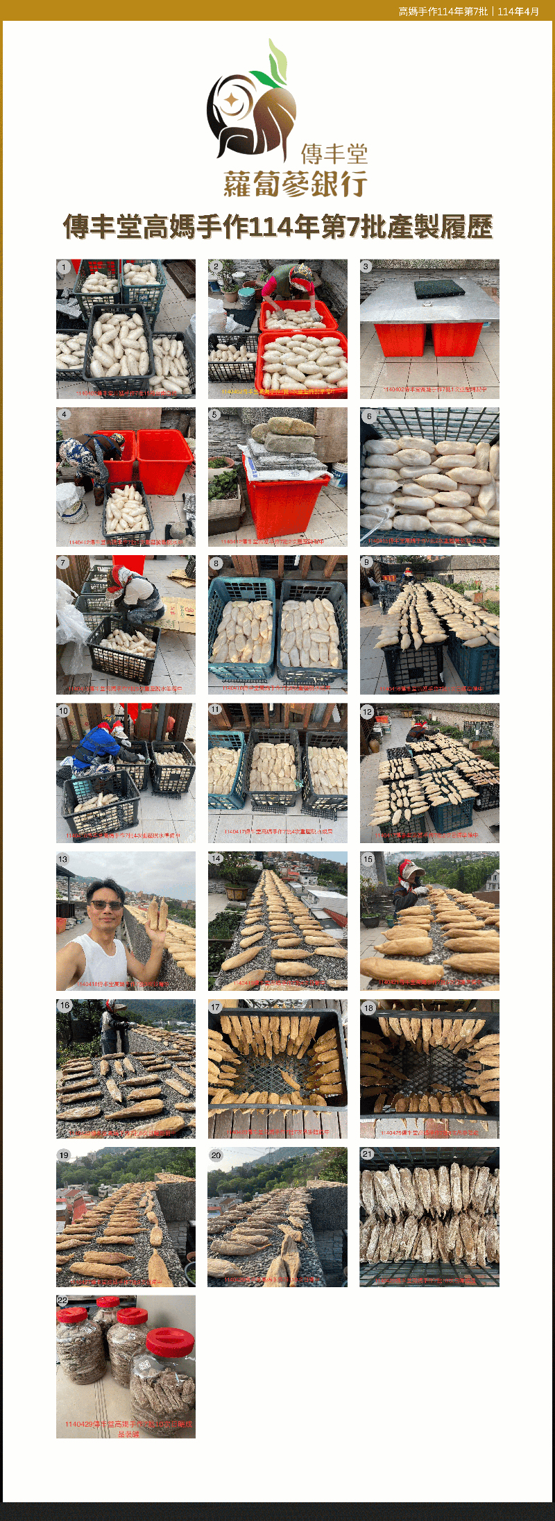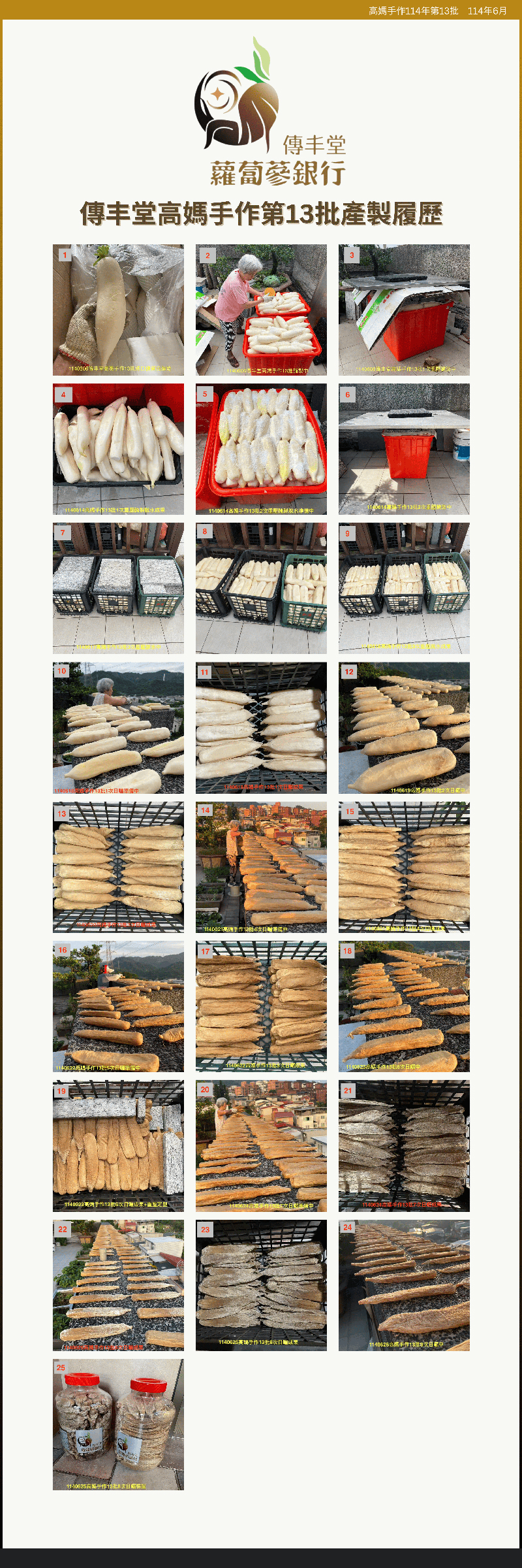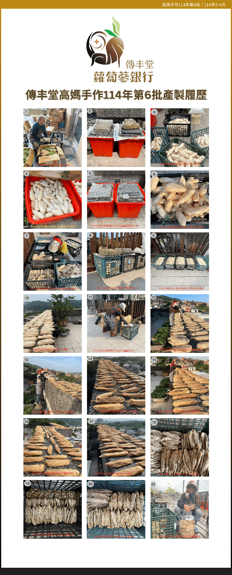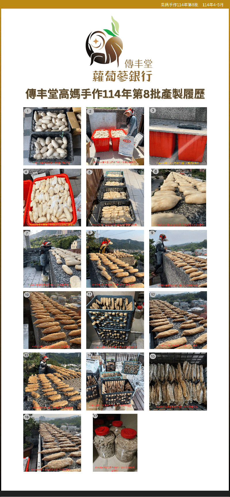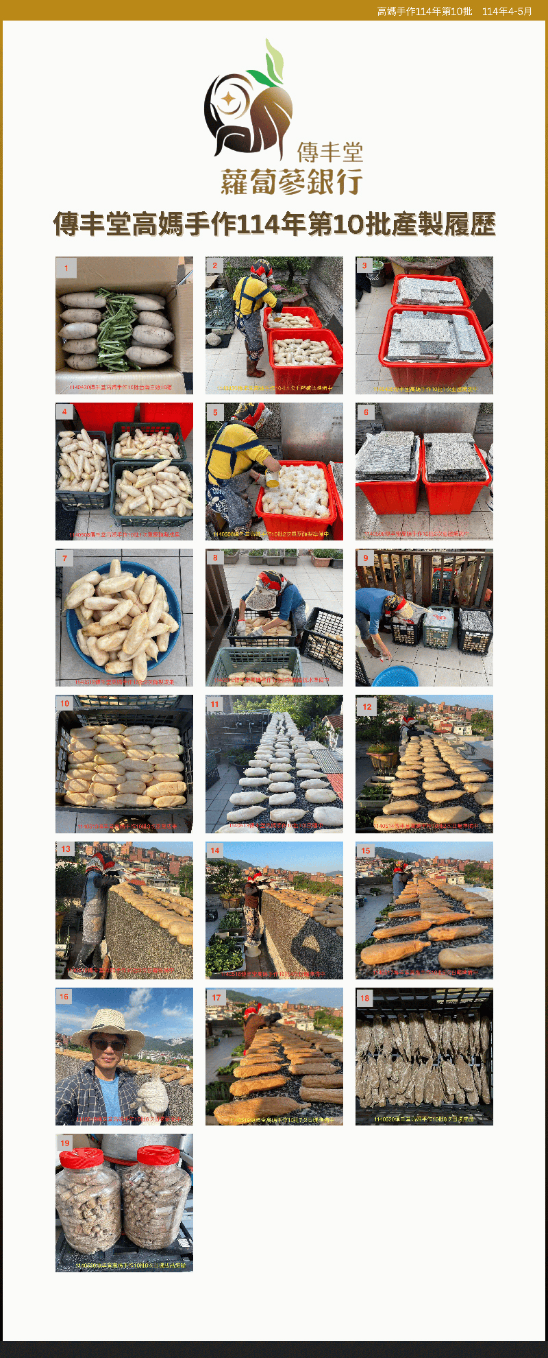 因為阿母的堅持與用心,為了讓更多的朋友、客戶了解、認識一條「白蘿蔔」如何變成一條有生命的「蘿蔔蔘」,其產製過程的繁雜與辛勞,所以產蔘過程中,高技師努力用照片幫阿母做紀錄,除了當「蘿蔔蔘」產製履歷紀錄外,更是幫阿母的樂觀、正向、堅持的人生態度留下珍貴紀錄。