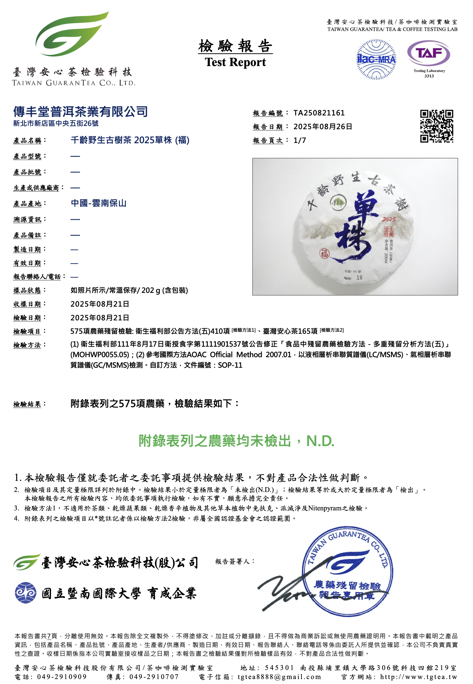| 農殘檢測 | 75項零檢出(報告編號: TA250821161) |