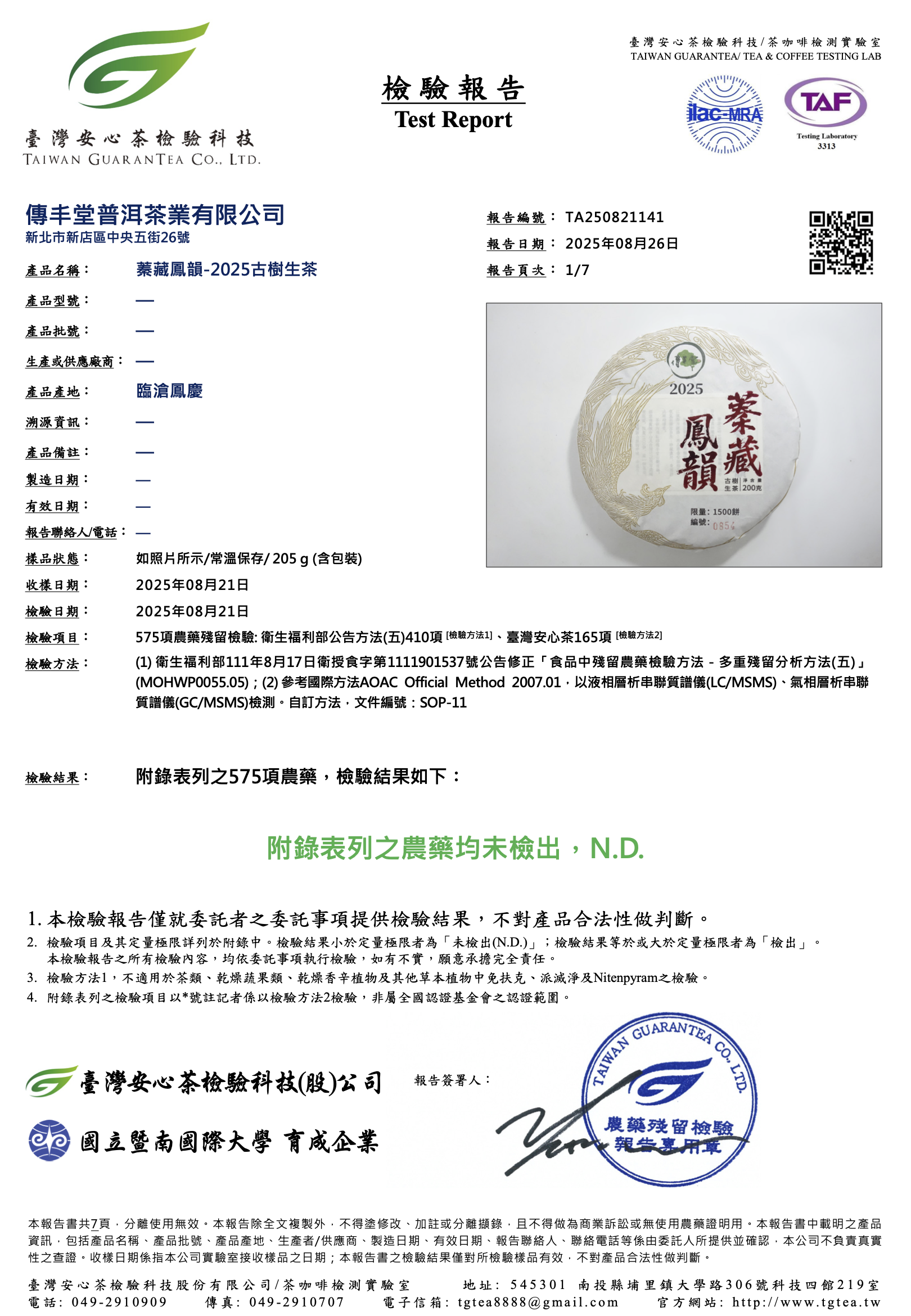 茶餅內飛拓印傅丰堂古樹密碼,經雲南質檢中心及台灣575項零農殘雙認證,限量1500餅。藏一餅鳳韻,既是典藏横斷山脈的呼吸,亦是埋入時光長河的傳世茶種。