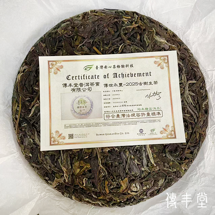 傳丰堂每款茶品,雖然產量都不多,但都是經過一次大陸檢測、兩次台灣檢測,共3次無農殘檢測認證,目的是讓消費者喝的安心、放心,藏養有信心。本品通過「四川省中安檢測有限公司」、「台灣安心實驗室」等認證,所以在包裝上,採用成本較高的雙層包裝紙。