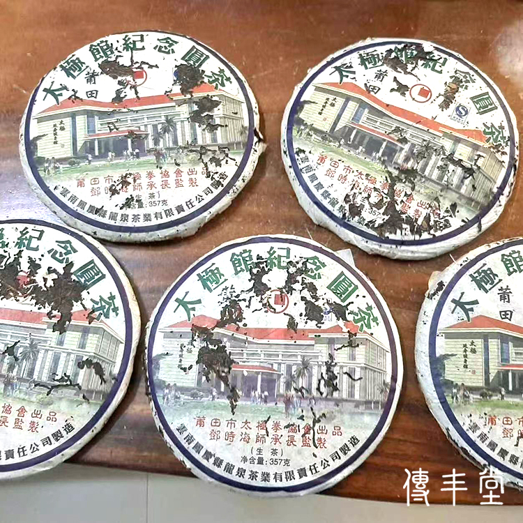 此款「2009太極館紀念圓茶」,與鄧老師「福祿圓茶」系列原料相同。「福祿圓茶」是鄧時海老師2006年時深感普洱茶體系的缺失,經過深入思考與詳細調研之後,與龍泉茶業合作的第一款茶品。鄧老師希望「福祿圓茶」能如同宋聘號給普洱茶歷史留下深刻的印跡,為現代普洱茶搭建一座橋梁。將來人們喝到當年的普洱茶時,可推想到30年或40年前的號級茶。